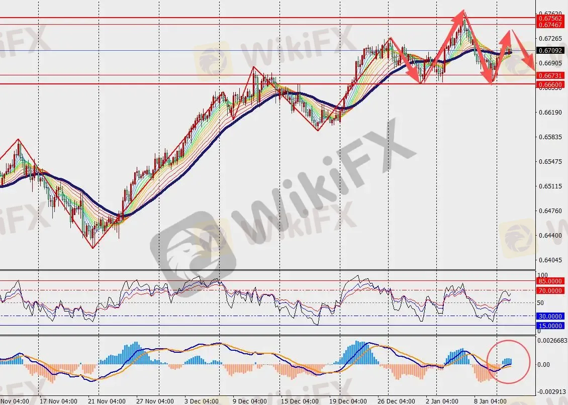 第一阻力位:0.6750 第一支撑位:0.6660