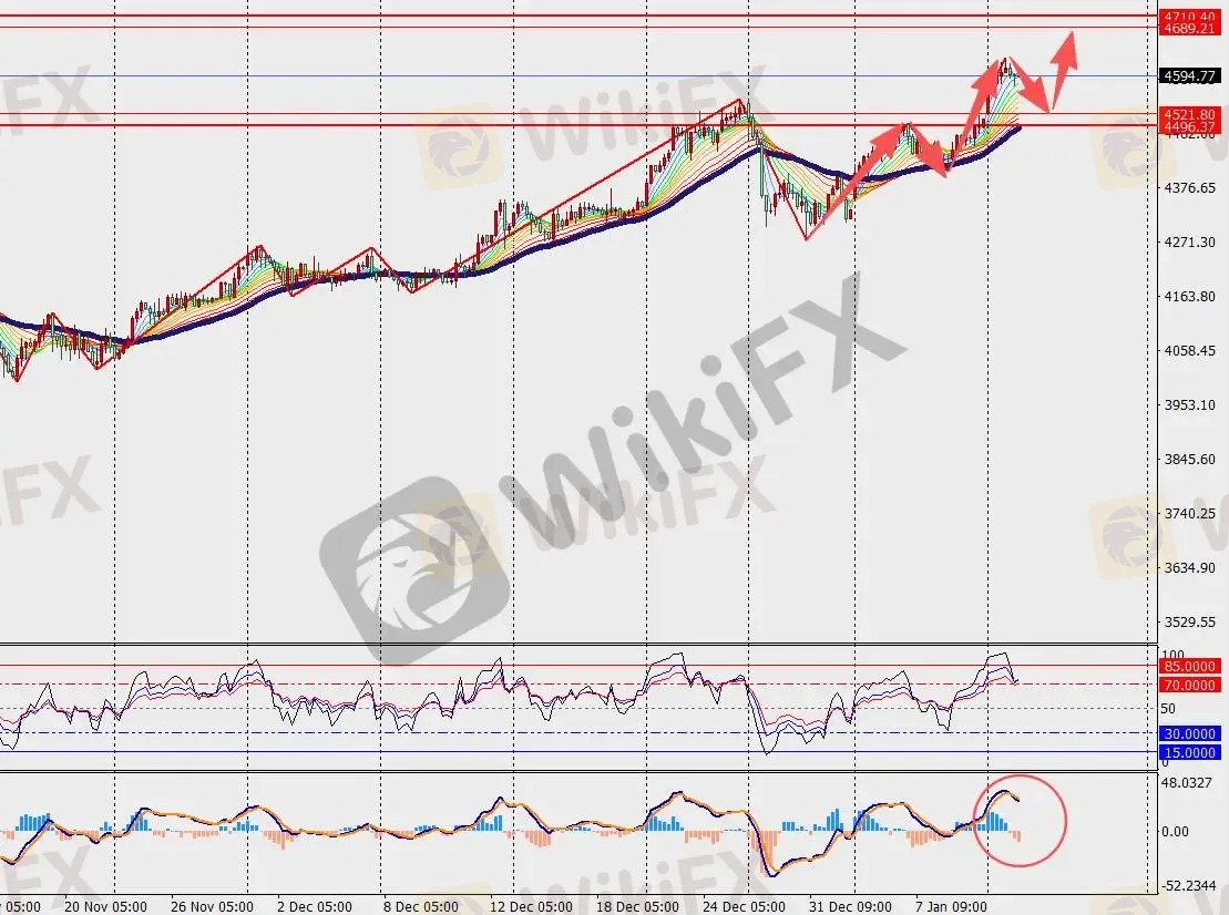 第一阻力位:4610.00 第一支撑位:4575.00