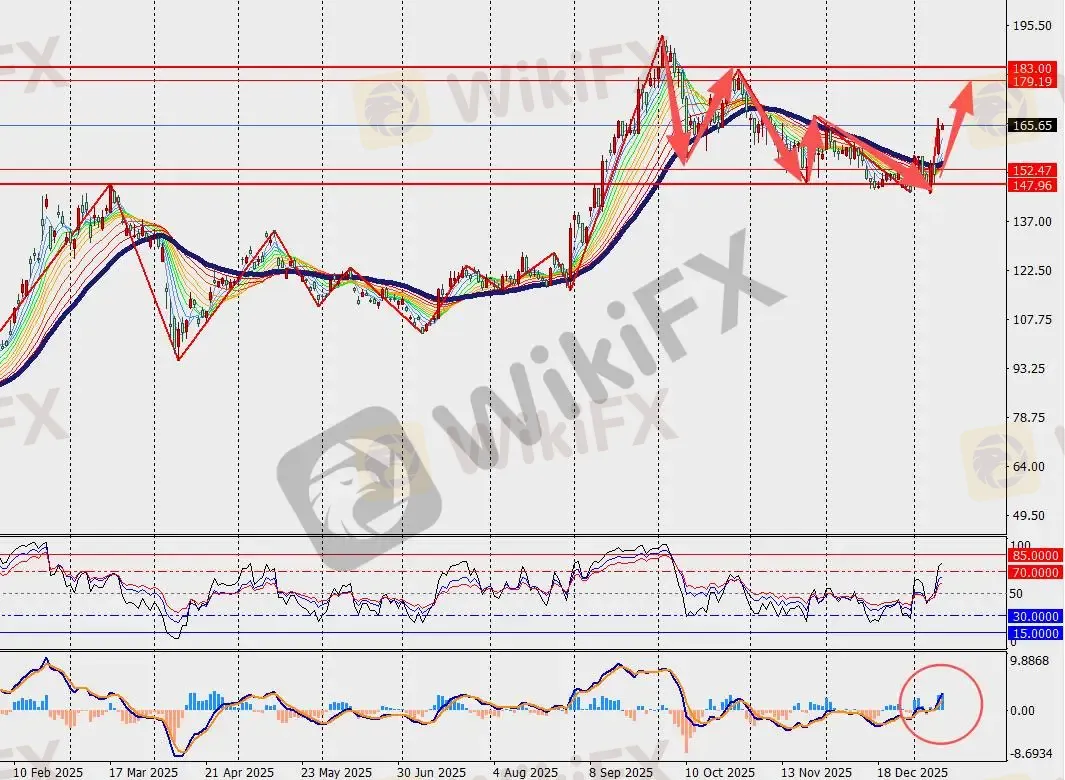 第一阻力位:173.00 第一支撑位:157.00