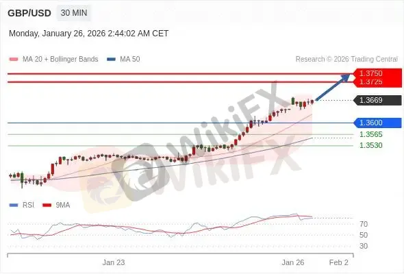 交易策略: 在 1.3600 之上,看涨,目标价位为 1.3690 ,然后为 1.3725。