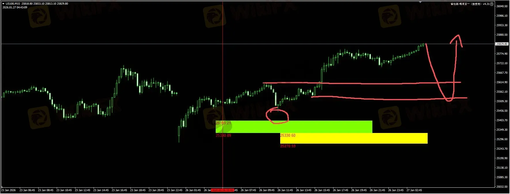 纳指:价格隔夜最低回撤至25452,距离我们绿色区域buy limit相差53bp。此后价格强势反弹触及了25800上方,日内重要关注的需求区和扫流动性区域在25500-25600区域。详细位置请咨询插件。