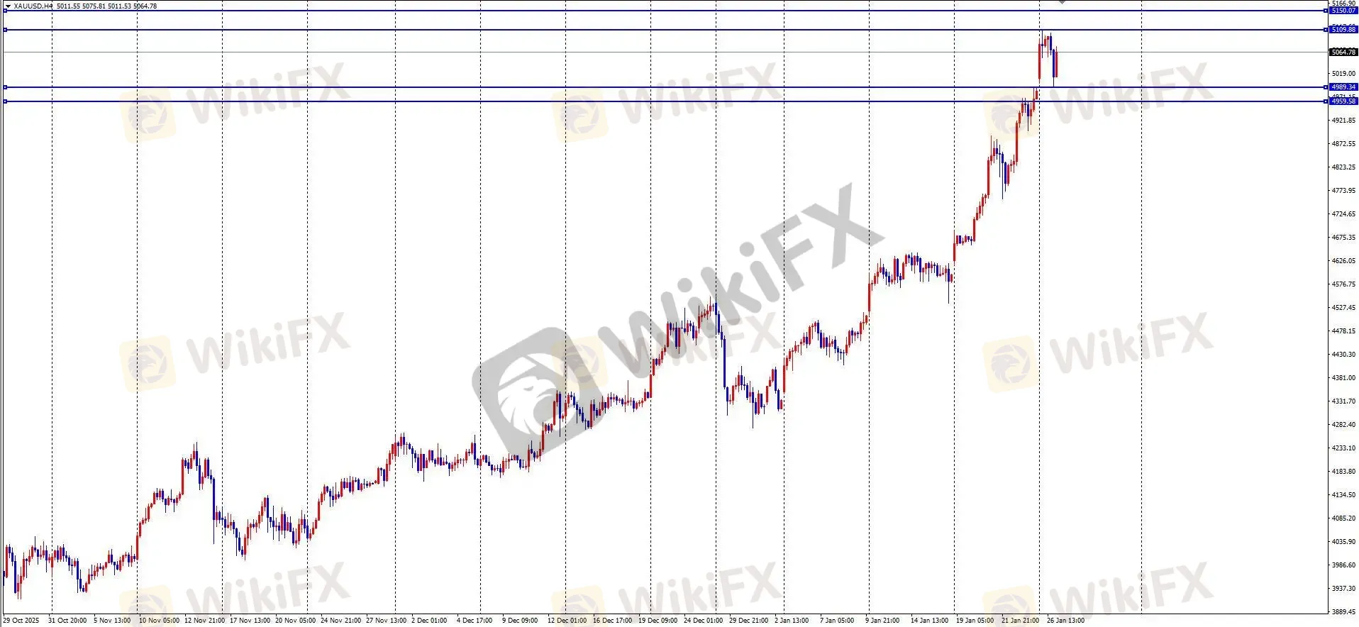 摘要:XAU/USD昨日回顾与 ETO Markets 观点周一,金价亚盘跳空高开并快速上破 5000 整数关口,最高触及 5110 附近。欧盘以横盘震荡为主,美盘转为下跌并跌破开盘价,最低至 4989 后企稳回升,全天波幅约 1217 点,日线收墓碑线。ETO Markets 认为,日线多头动能看似减弱,但早盘自低位反弹,4小时收出向上吞没形态,行情有望再度冲击高位。当前全球局势“多点开花”,地缘紧张