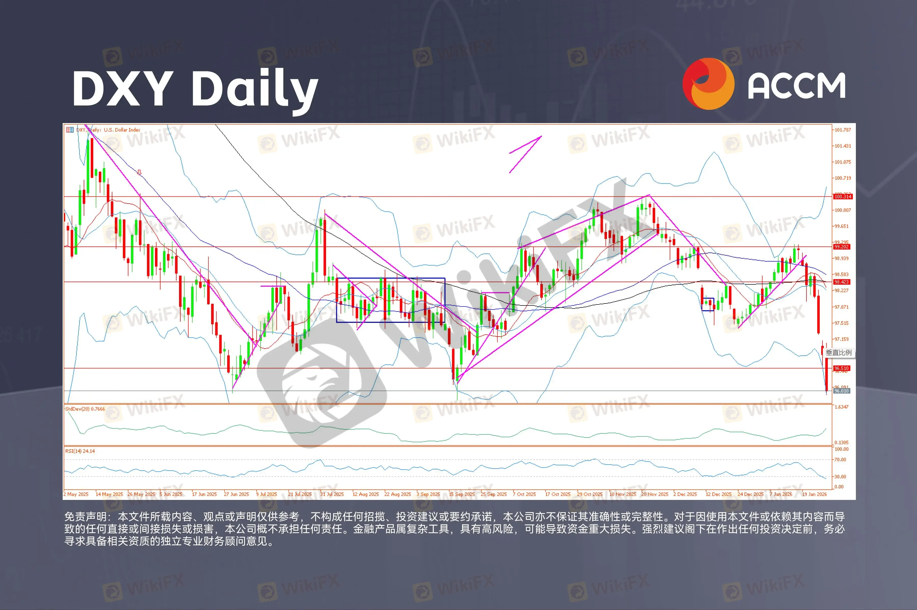 另一方面,美元自围绕格陵兰问题的地缘政治紧张局势升温、以及北约国家内部对关税问题的担忧加剧以来持续走弱。作为全球主导货币,美元的可信度再次受到国际市场的质疑。