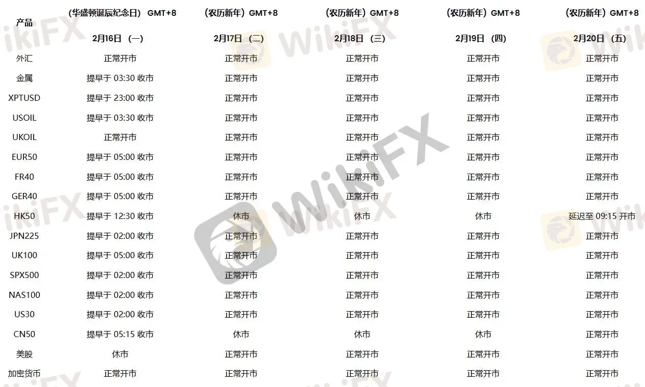 Juno Markets丨2026年2月假日交易时间更新