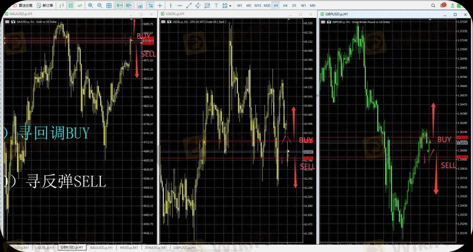 所有多空单策略万一被止损可寻回调下反向单,除赚回亏损外还能多赚。
