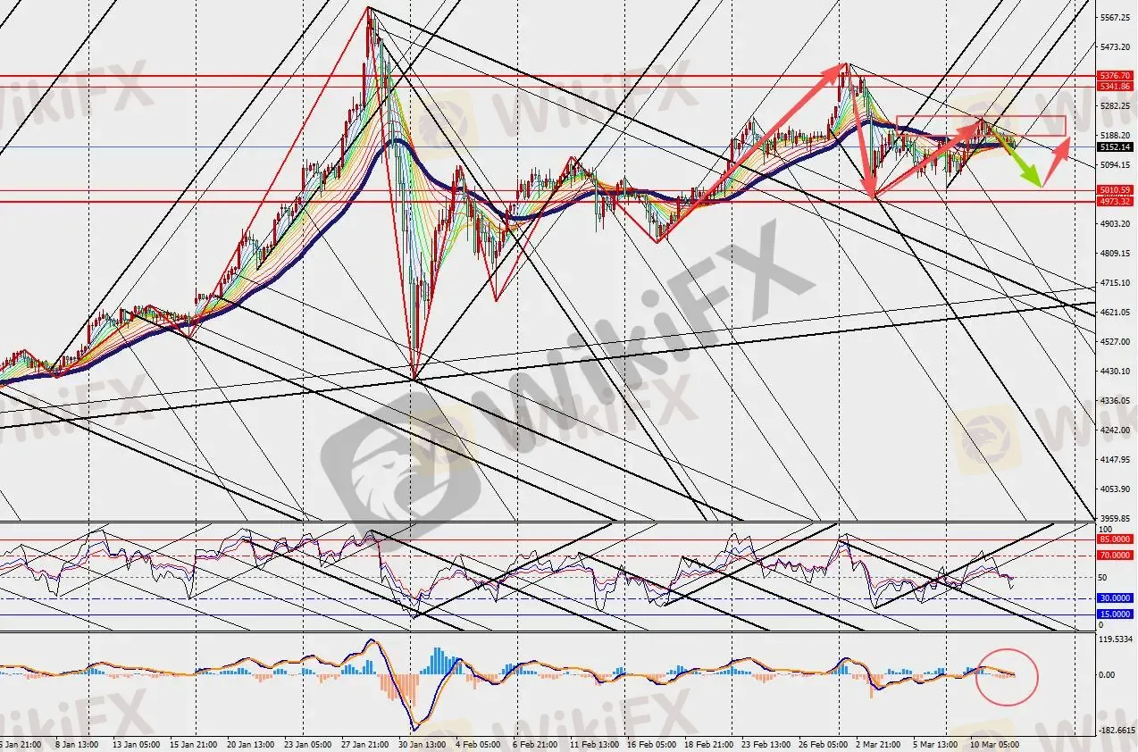 黄金H4级别下跌反弹,MACD双线和量能柱在零轴附近扩张。当前市场高度关注美联储3月议息会议和美国能源库存数据,叠加中东局势任何突发进展均可能引发剧烈波动。长期看,央行持续购金和通胀再加速预期仍是黄金结构性牛市的坚实支撑。