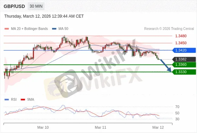 交易策略: 在 1.3420 之下,看跌,目标价位为 1.3360 ,然后为 1.3330。