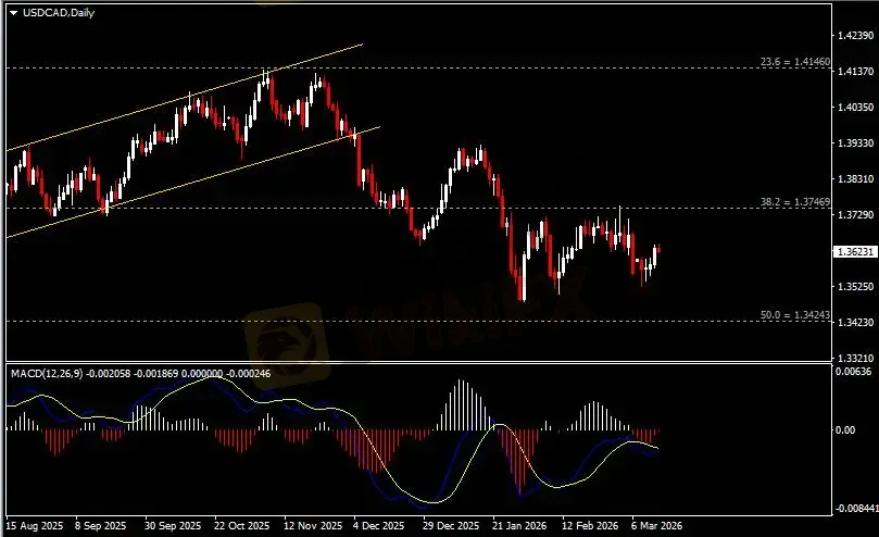 日线图显示美元兑加元反弹上涨,当前仍承压于1.3750阻力。从MACD来看,快慢线欲形成金叉,红色动能柱温和收缩。汇价走势基本和动能柱的变化一致。