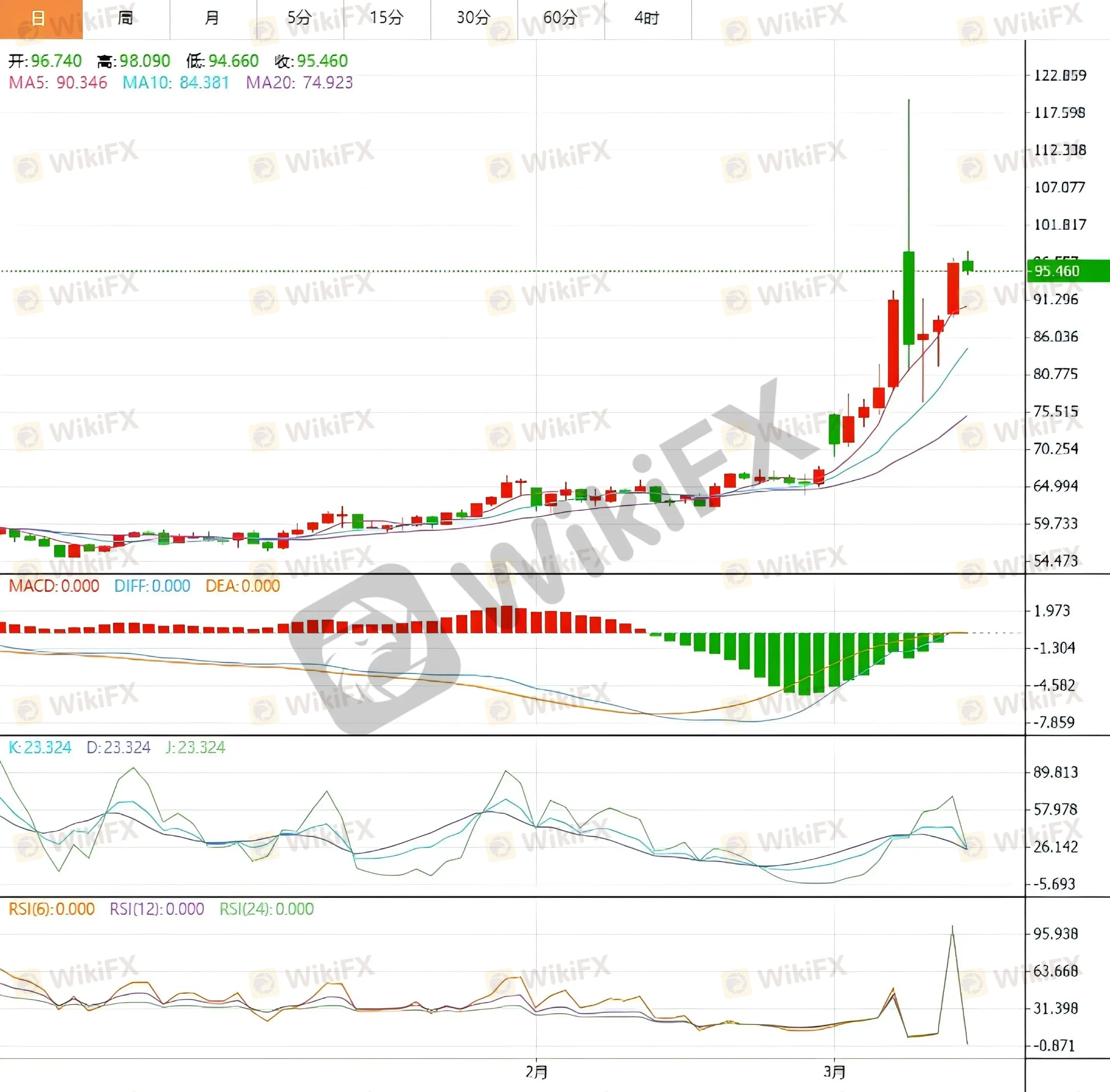 从技术走势观察,日线图显示 WTI 原油价格在过去数周形成明显的单边上涨结构,价格已经突破此前重要阻力区域 90 美元并快速上行,目前短期趋势仍维持强势。动能指标显示多头力量仍占主导,短期关键支撑区域位于 92 美元附近,如果该区域保持稳固,油价可能继续测试 98 美元至 100 美元的重要心理关口。
