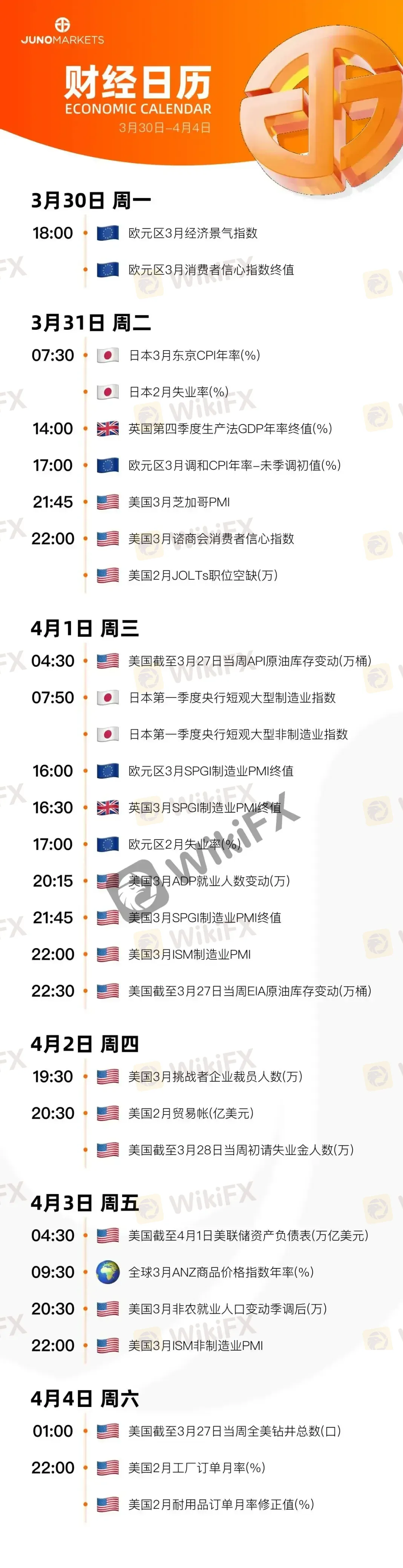 Juno Markets 丨财经日历 (3.30-4.4)