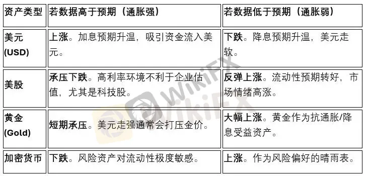 高于预期: 如果 CPI 录得 3.6% 或更高,说明通胀依旧顽固。美联储可能会推迟原定的降息计划,甚至释放“Higher for longer”的信号。