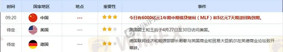 市场焦点正转向全球央行政策分化:美联储本周料维持利率不变,欧洲央行4月30日预计按兵不动但半数以上经济学家预测6月加息,英国央行周四会议或维持利率但市场计入年底前加息预期,日本央行周二会议预计维持利率不变但可能释放准备收紧政策的信号。
