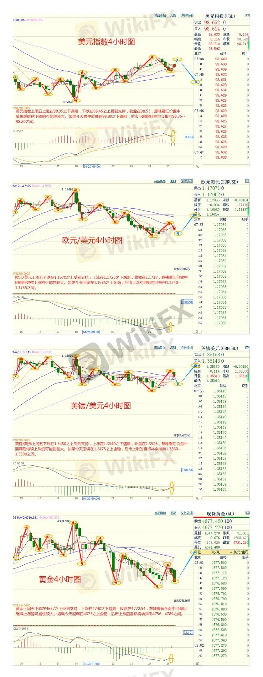 摘要:CWG Markets市场资讯2026年4月27日(周一)汇讯摘要:上周五,受司法部决定终止对美联储主席鲍威尔的调查,以及市场对结束美以与伊朗战争的谈判可能即将展开的乐观情绪日益高涨的影响,美元指数有所回落,最终收跌0.33%,报98.49;基准的10年期美债收益率收报4.307%,对美联储政策利率敏感的2年期美债收益率则收报3.791%。周一(北京时间4月27日)亚市早盘,现货黄金开盘回落至47