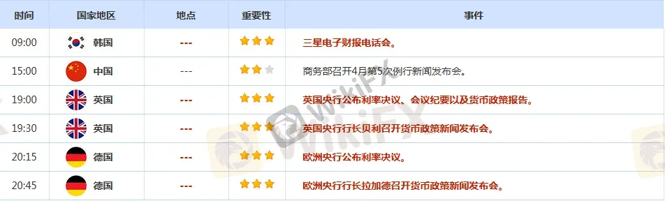前日公布数据与消息: