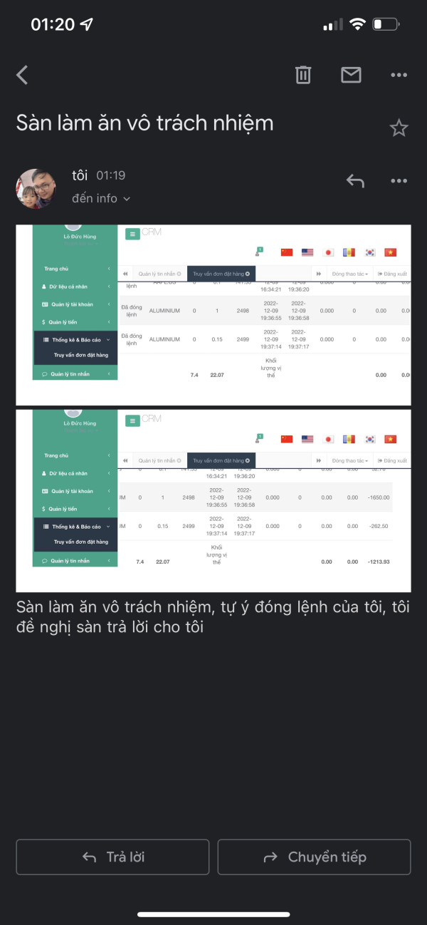 Sàn gian lận, tự ý vào tài khoản và đóng toàn bộ lệnh đang giao dịch mà không có lý do, tôi đã gửi thư cho bộ phận hỗ trợ, nhưng không nhận được câu trả lời