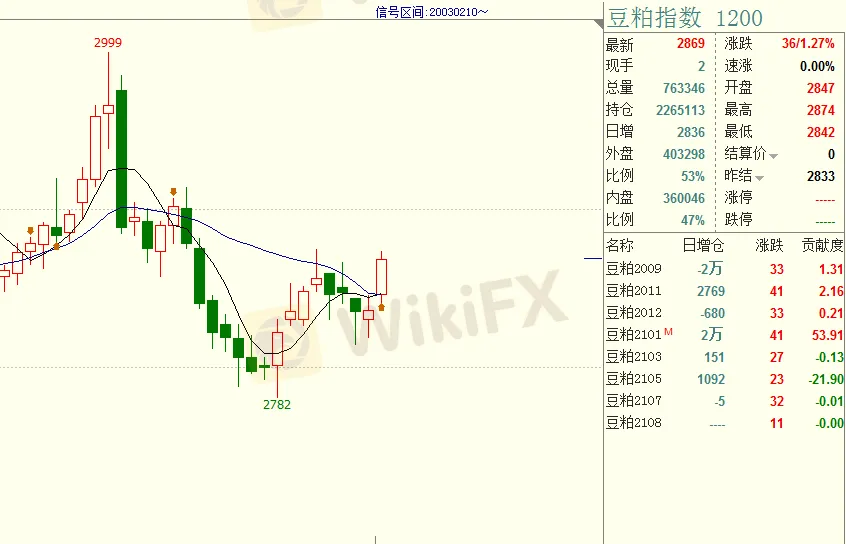 而如果你的參數係統是5和30,那麼當前的豆粕期貨可能就是空單。