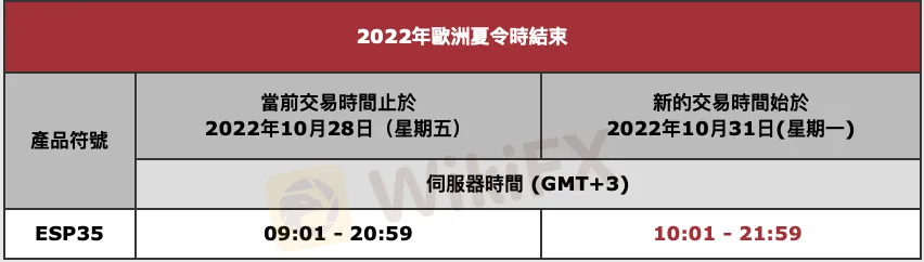 由於受到歐洲夏令時結束的影響,於10/31(星期一)開始,以下產品的市場交易時間將在此期間進行調整。