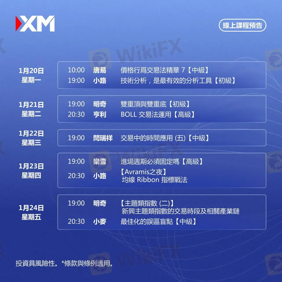|XM| 中文線上直播講座,本週預告(1/20-1/24)