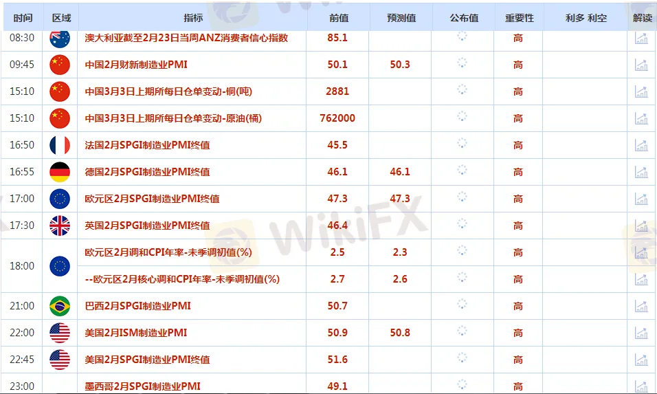 摘要:CWG Markets市場資訊2025年3月3日(週一):匯訊摘要:上週五,美元指數先持續震盪,然後在尾盤突發大漲,一度逼近兩周高點,最終收漲0.25%,報107.55,但2月下跌0.89%,創下去年9月以來的最大月線跌幅。 美債收益率延續下跌勢頭,基準的10年期美債收益率繼續下行,報4.22%; 對貨幣政策更敏感的兩年期美債收益率收報4.007%。特朗普的關稅威脅也引發上週五的新興市場波動,印尼