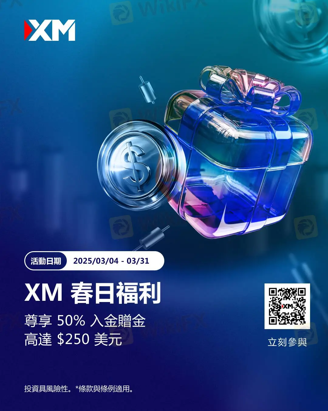 2025年3月4日至3月31日期間,入金 XM 交易帳戶,即可享受 50% 入金贈金,最高可達 $250 美元,為你的交易增加籌碼。
