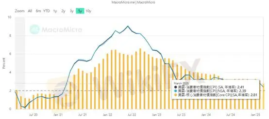 如果單就CPI資料進行觀察,美國3月CPI與核心CPI資料受惠於限制性利率區間影響,通膨資料仍呈現趨勢性下行,面對關稅通膨風險之不確定性,鮑爾採取按兵不動反而是最恰當的決策。