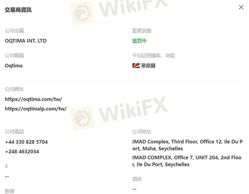 外匯天眼做為全球最權威的交易商查詢平台,至今已經收錄並更新超過71000家公司資訊,並且每日發布券商評測/詐騙曝光文章,幫助用戶趨吉避凶,找到適合自己的券商。最近我們注意到不少台灣投資人在查詢Oqtima的評價,下面就讓我們一起了解其營運狀況。