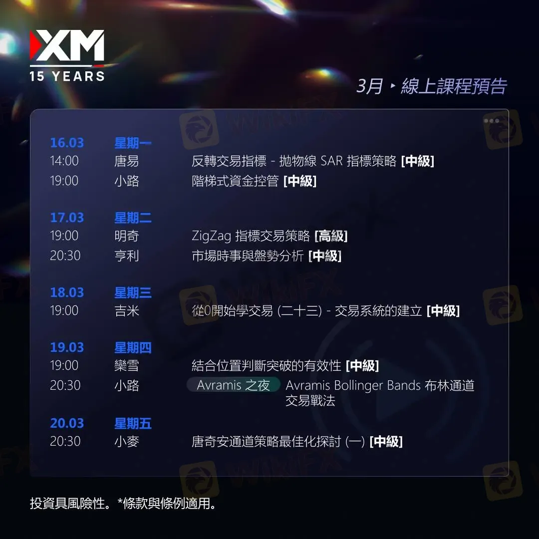 🔥 每週一至週五,1小時以上的高密度實戰教學,XM 中文直播講座帶你拆解行情節奏,系統化學習實用交易策略與關鍵出場邏輯,穩步提升交易執行力與策略穩定性!